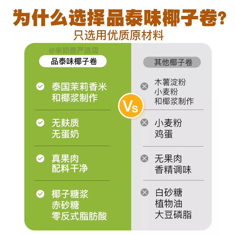 品泰味无麸质零食椰子卷儿童饼干无蛋奶敏宝零食拒添加无泰国进口