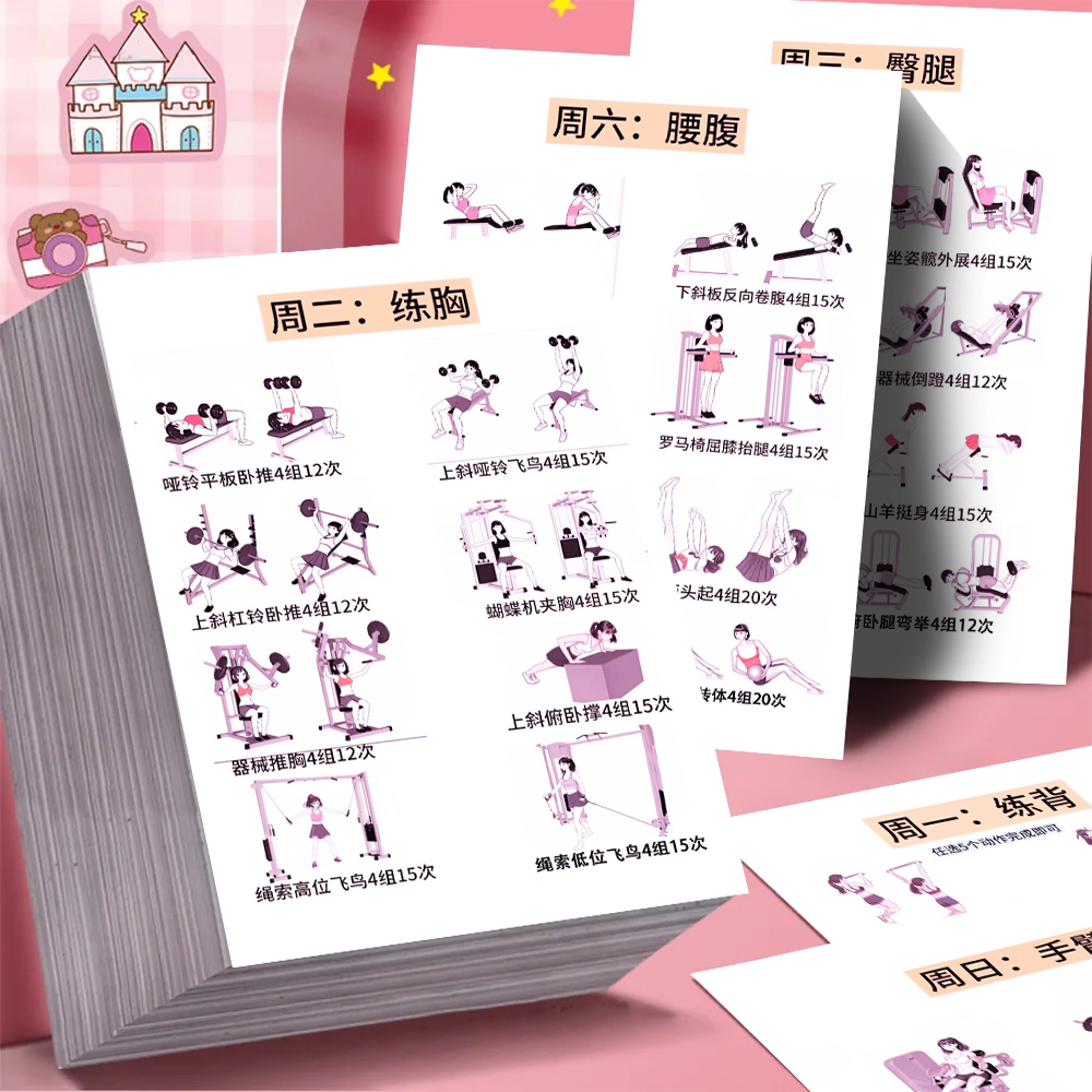 新手小白女生健身力量训练身体局部线条塑造体态改善动作指导贴纸
