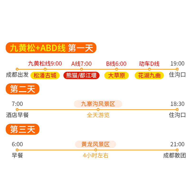 九寨沟三日游四姑娘山都江堰黄龙熊猫纯玩达古冰川动车高铁跟团