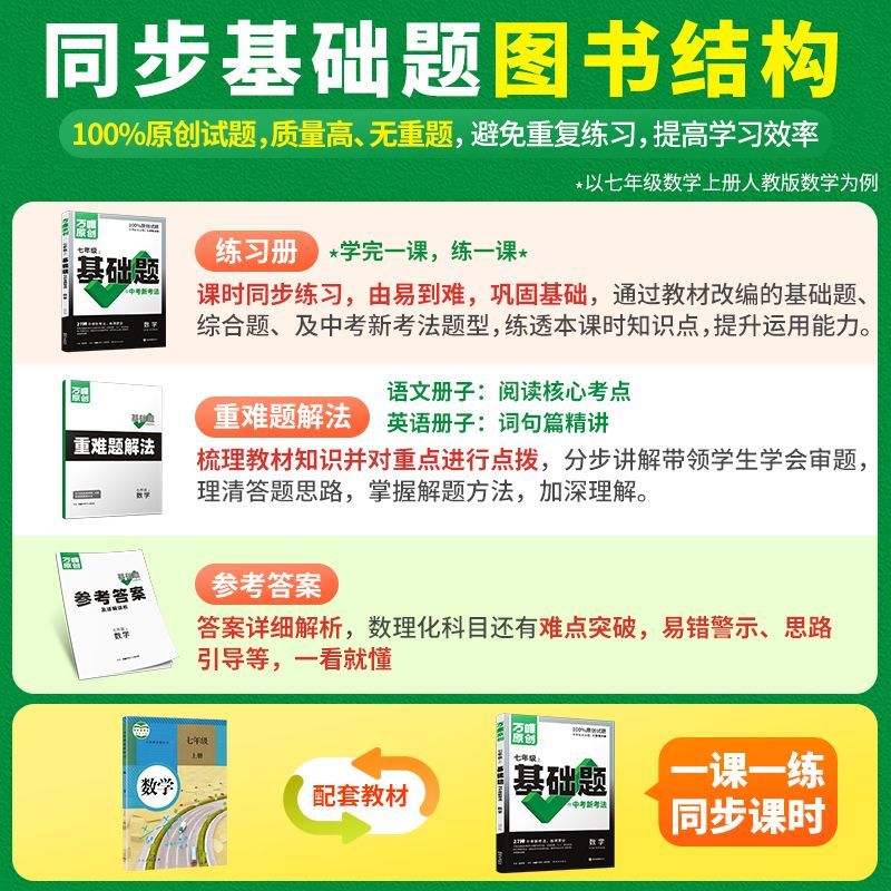 2026版初中必刷题七年级八九年级上下册人教版北师沪牛数学语文英语物理化学生物地理政治历史小四门试卷七上初一二三同步练习册书