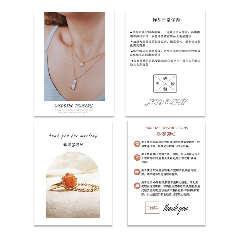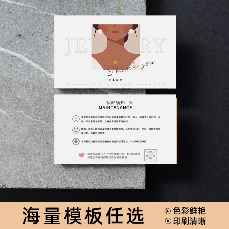 饰品保养卡定制首饰店养护贴士卡纸印刷银饰珍珠说明提示卡片二维码logo设计印刷手镯耳饰项链珠宝售后卡定做