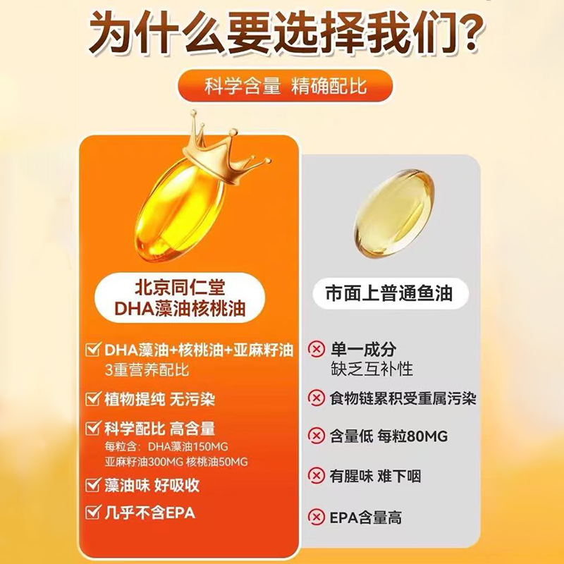 北京同仁堂DHA藻油核桃油儿童学生孕妇专用补增强脑记忆力旗舰店