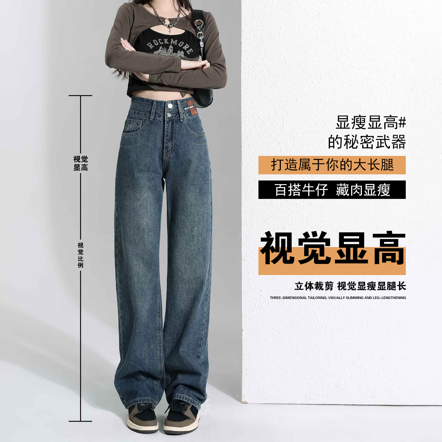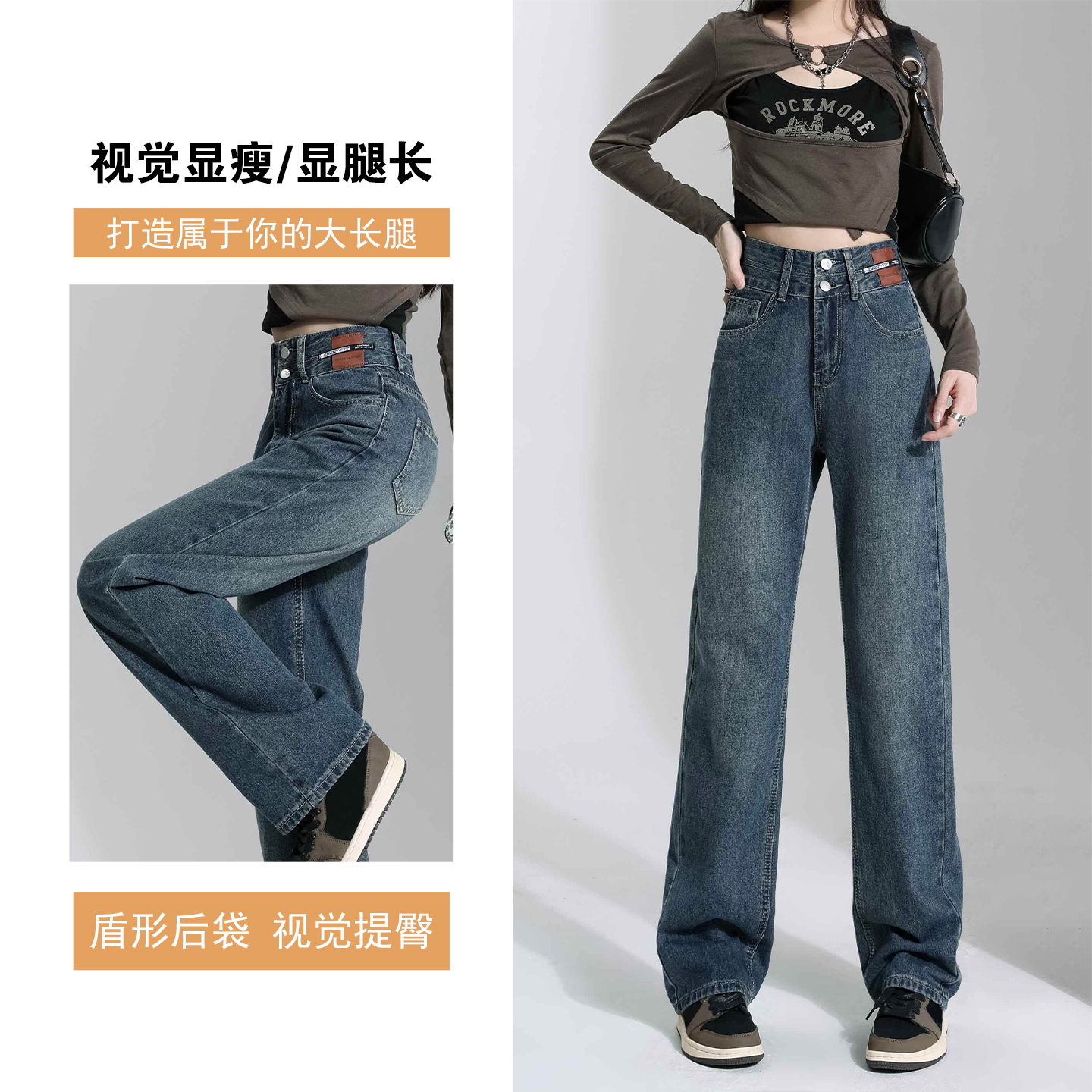 NG真维斯2025秋季新款阔腿牛仔裤女高腰窄版垂感常规直筒裤子V