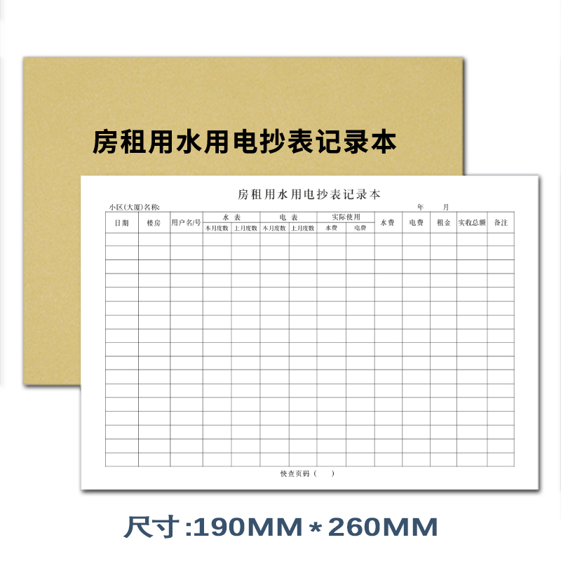 100页/本房租用水用电抄表记录本水电出租登记本出租屋水电费记录本租房电表抄表本水表房屋租赁合同协议书
