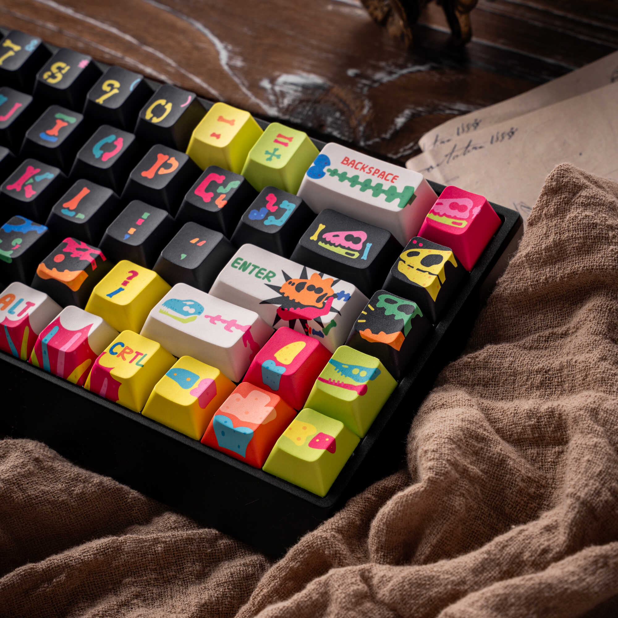《深色骨龙》PBT热升华原厂高度键帽146机械键盘键帽MU68夜魔雨75