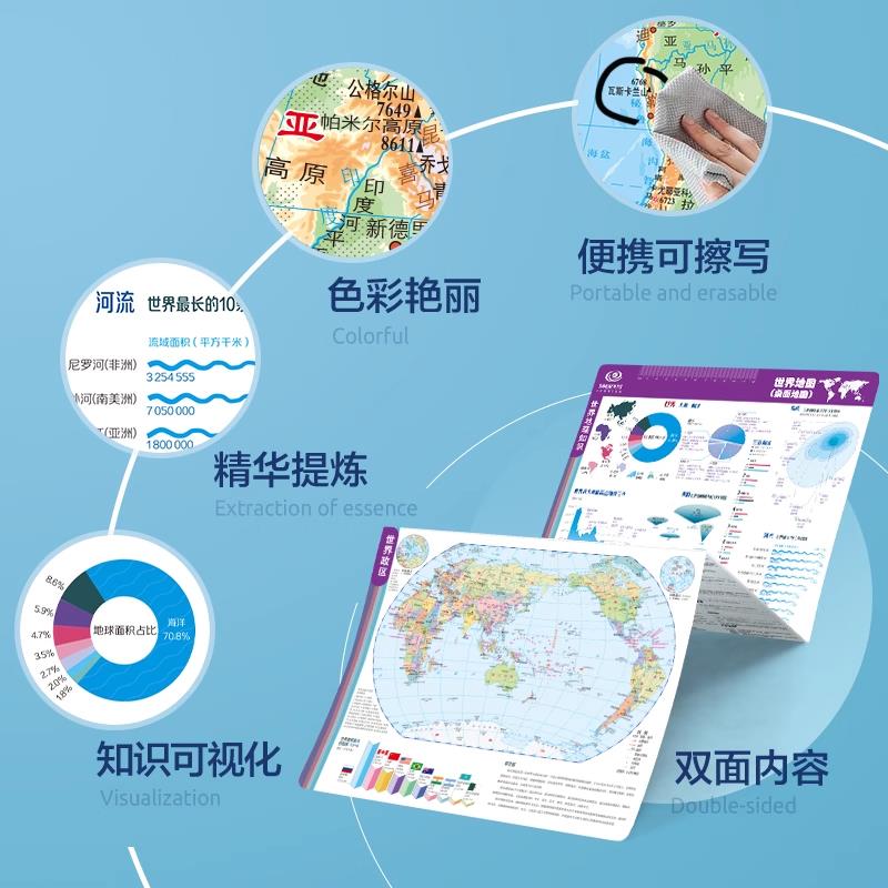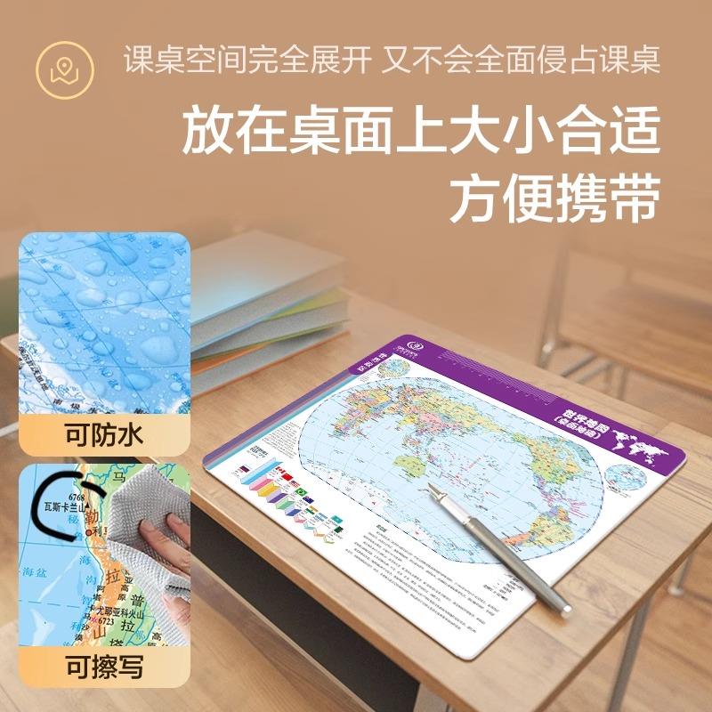 地图桌面中国地图和世界地图政区地形二合一初高中小学生用地理