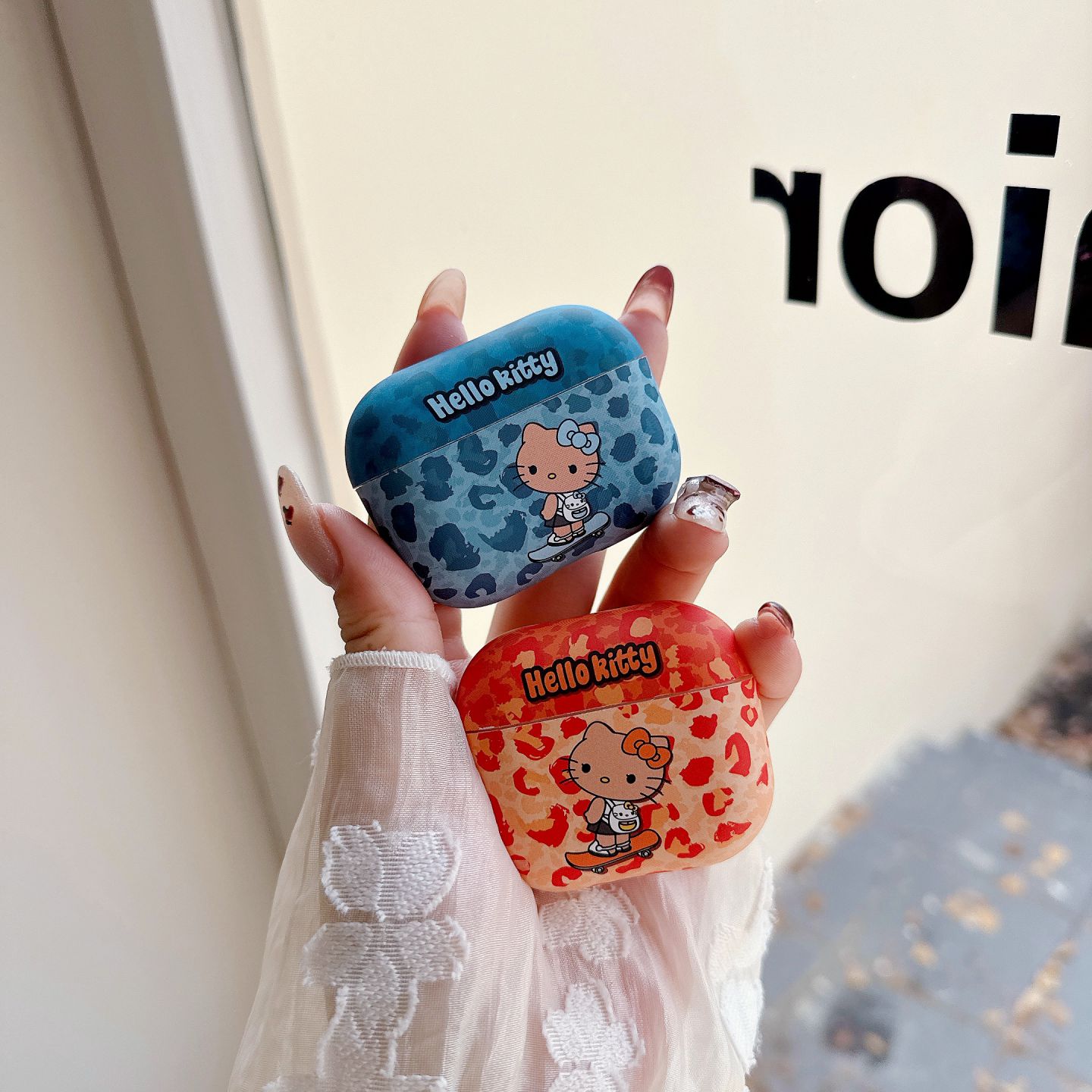 ins风黑皮豹纹凯蒂猫适用Airpodspro3蓝牙保护套苹果4代耳机壳airpods3/4软壳pro2一二代通用tpu新款pro3软壳