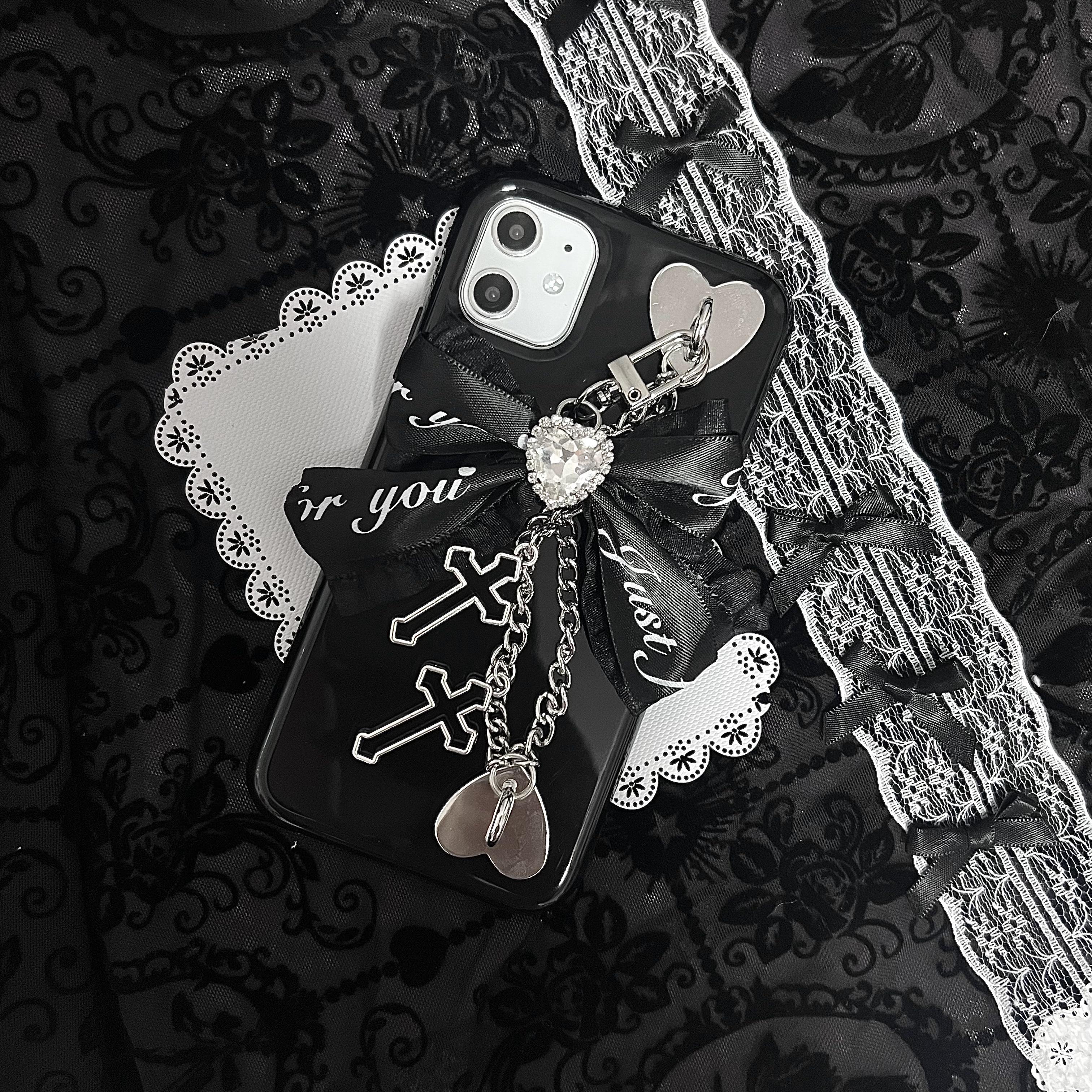 甜耳兔原创蝴蝶结适用于苹果17promax网红同款暗黑iphone16十字架宝石手机壳蕾系
