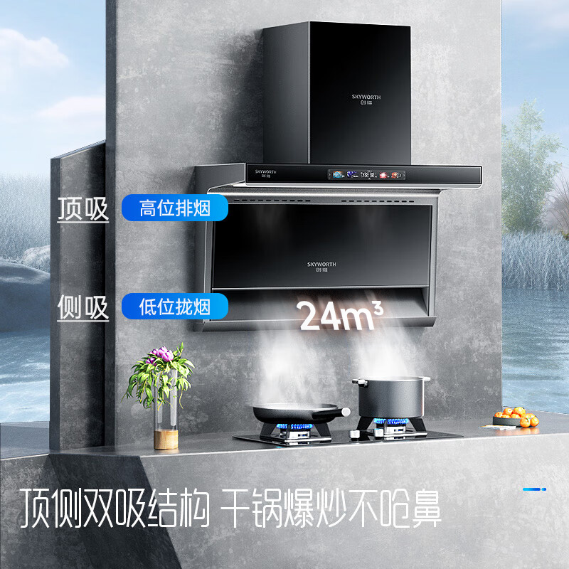 创维变频吸油烟机家用厨房自动清洗顶侧双吸抽烟机以旧换新补贴23