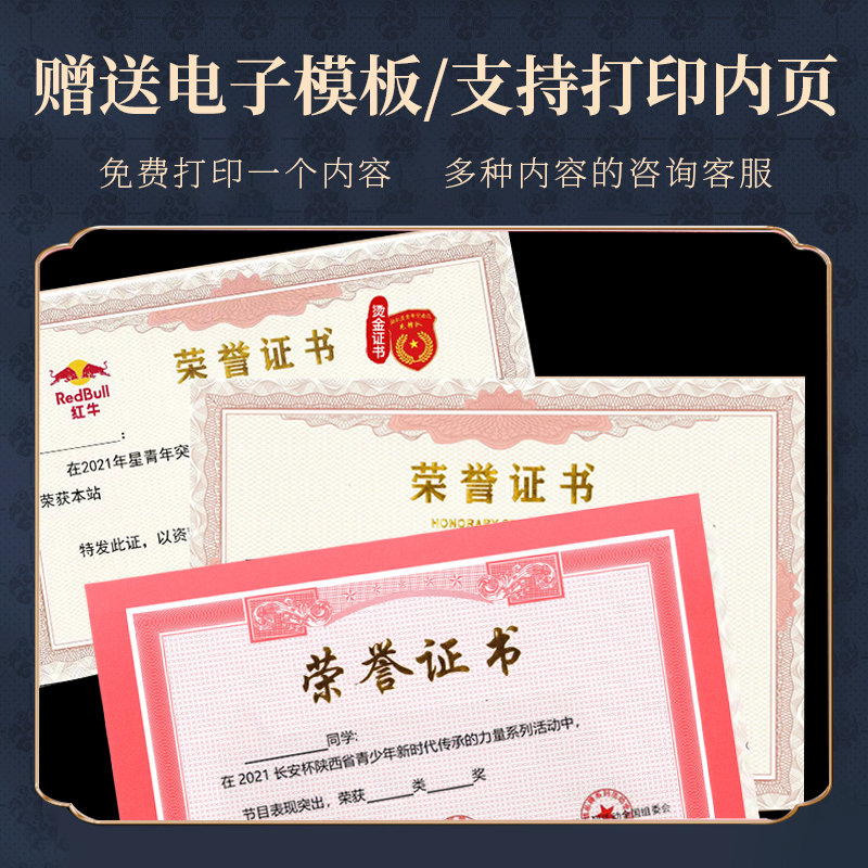 荣誉证书内芯红色A4普通烫金聘书a4纸结业毕业奖学金奖状空白打印