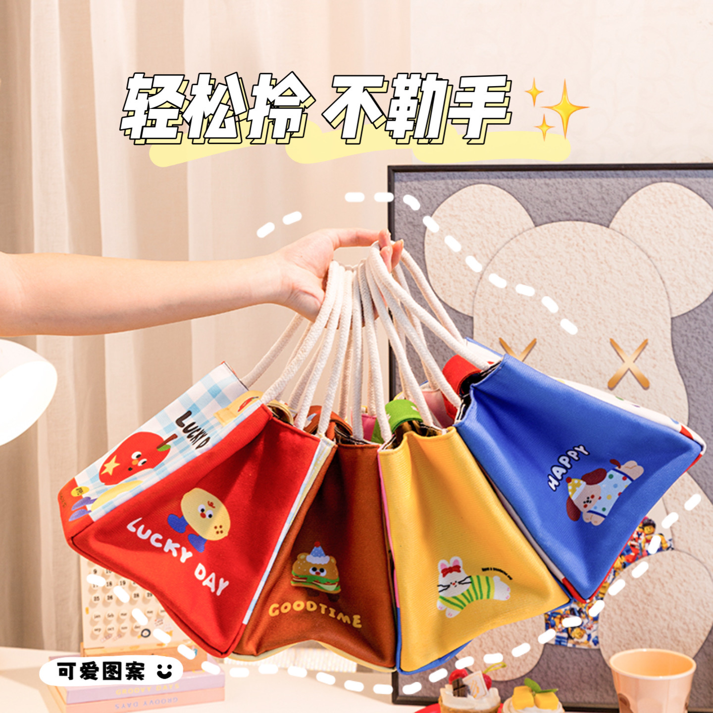 可爱保温饭盒袋手提便当包大容量学生上班族便携早餐包带饭零食袋