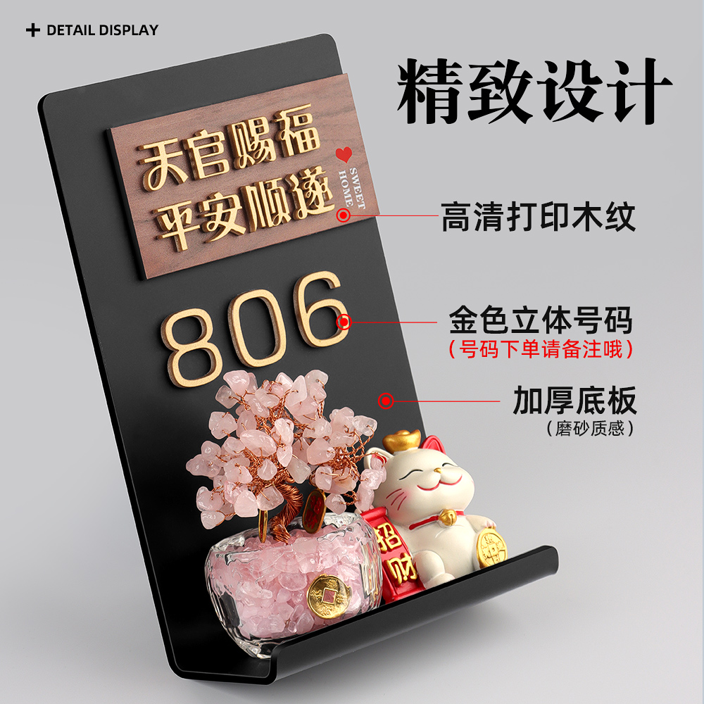 门牌号高级感轻奢创意号码牌家用自粘中古风招财猫摆件入户门发光装饰定制回家仪式感家庭卧室房间免打孔挂牌