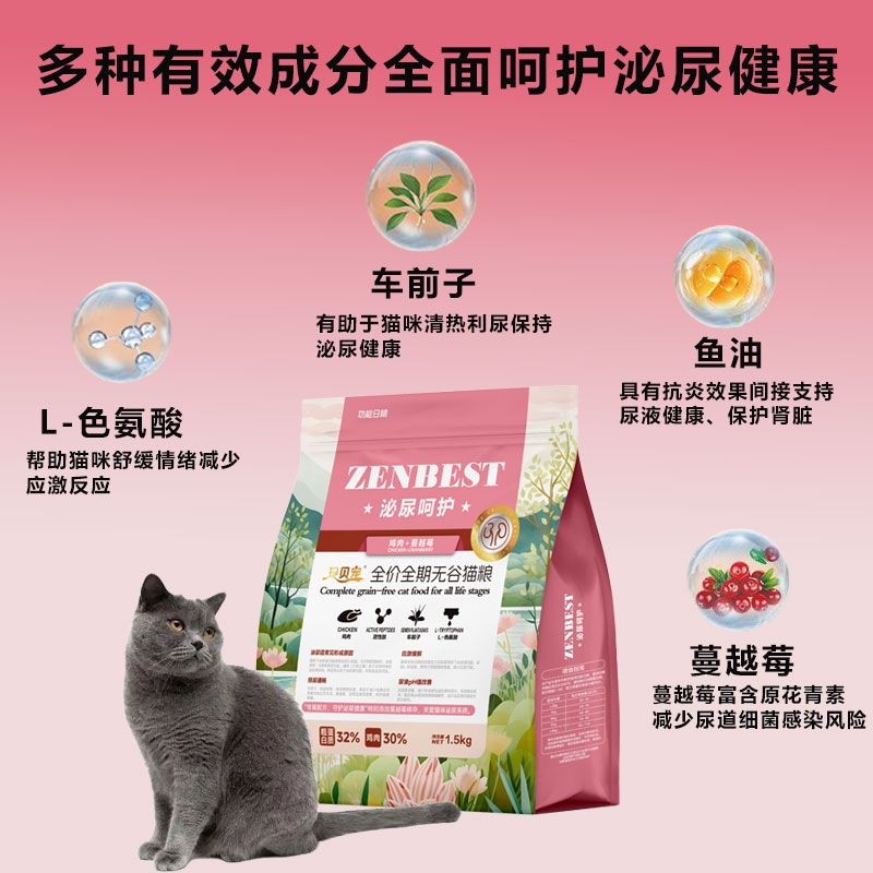 珍贝宠全价泌尿道猫粮系统呵护成幼猫情绪舒缓尿闭1.5kg日粮美毛