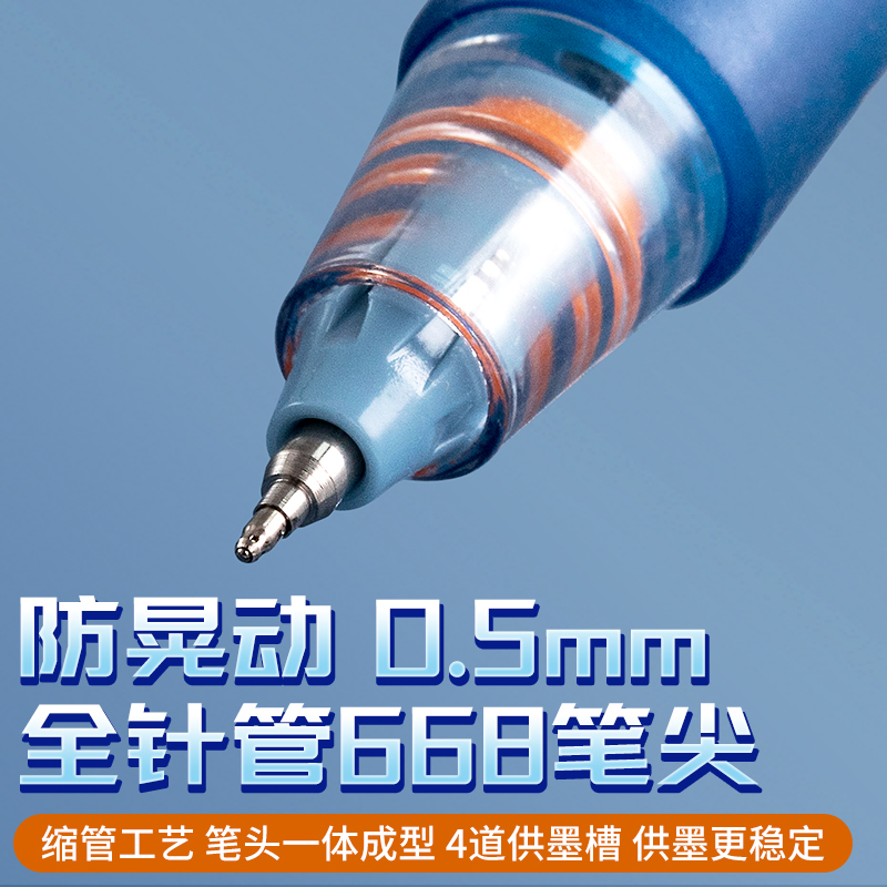 晨光领航员防晃动中性笔0.5mm按动全针管中性黑笔加强型笔芯速干水笔小初学生专用刷题笔高颜值红笔K4201