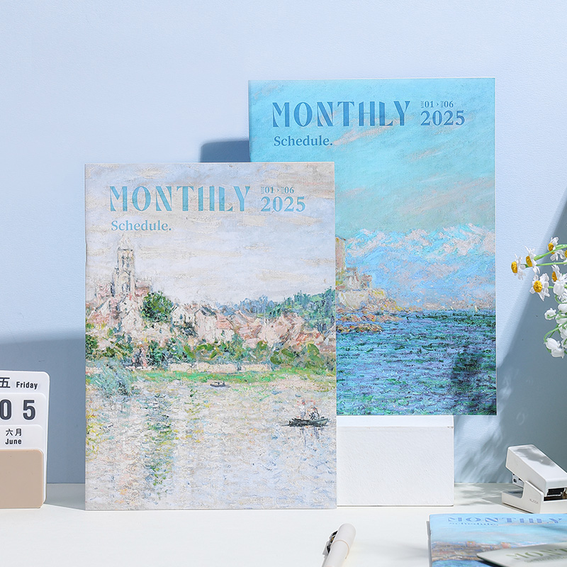 英力佳2025年日历记事本油画工作小秘书年历本计划本日程本月计划时间管理效率手册带日期的记事本记账本本子