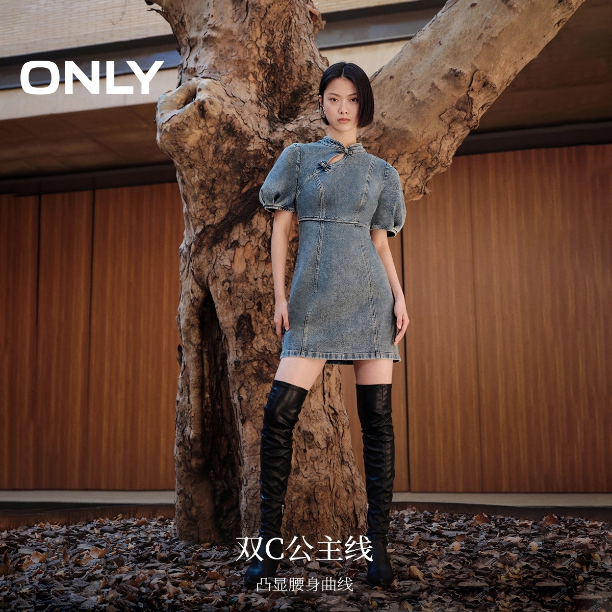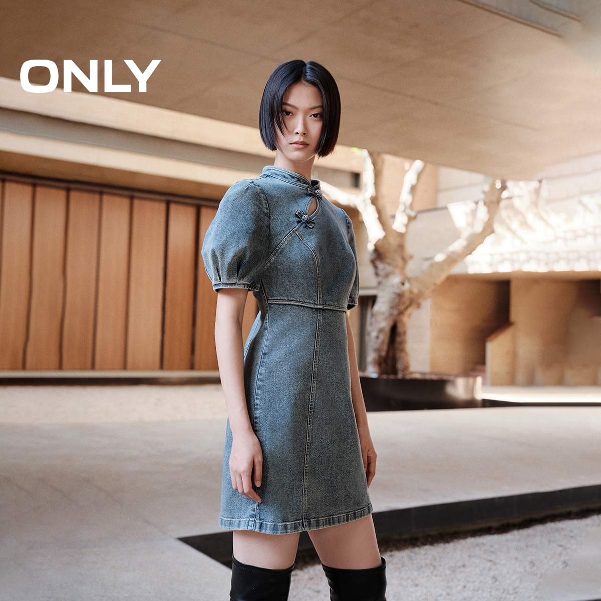 【新中式】ONLY2025夏季新款国风新中式泡泡袖牛仔短裙连衣裙女