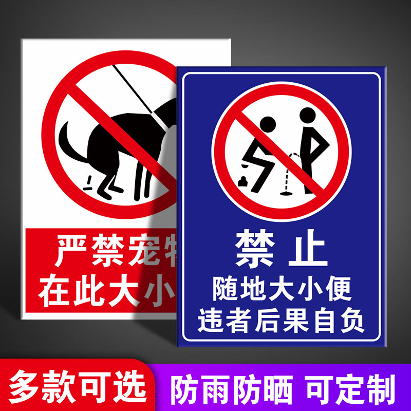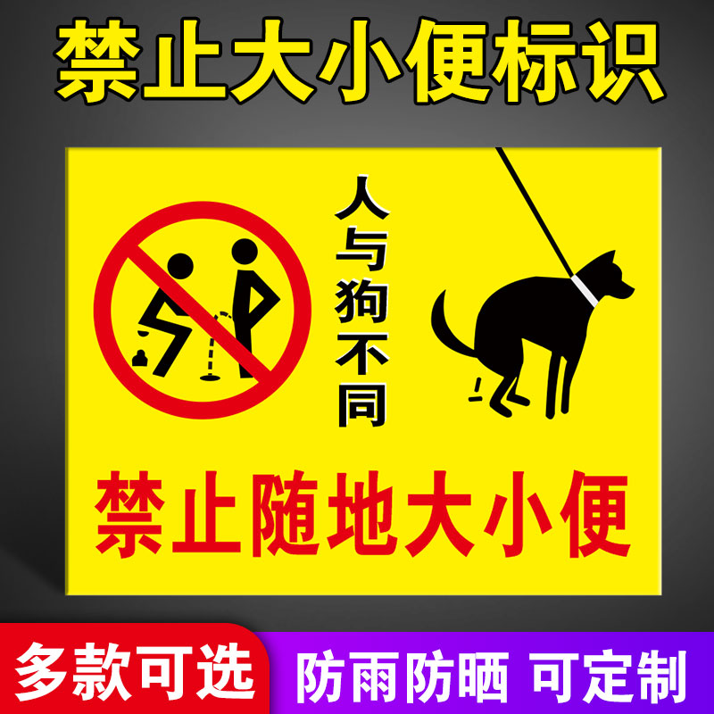 严禁宠物在此大小便警示牌人与狗不同禁止随地大小便文明遛狗标语提示牌温馨提示贴纸警示标志标识牌公共区域