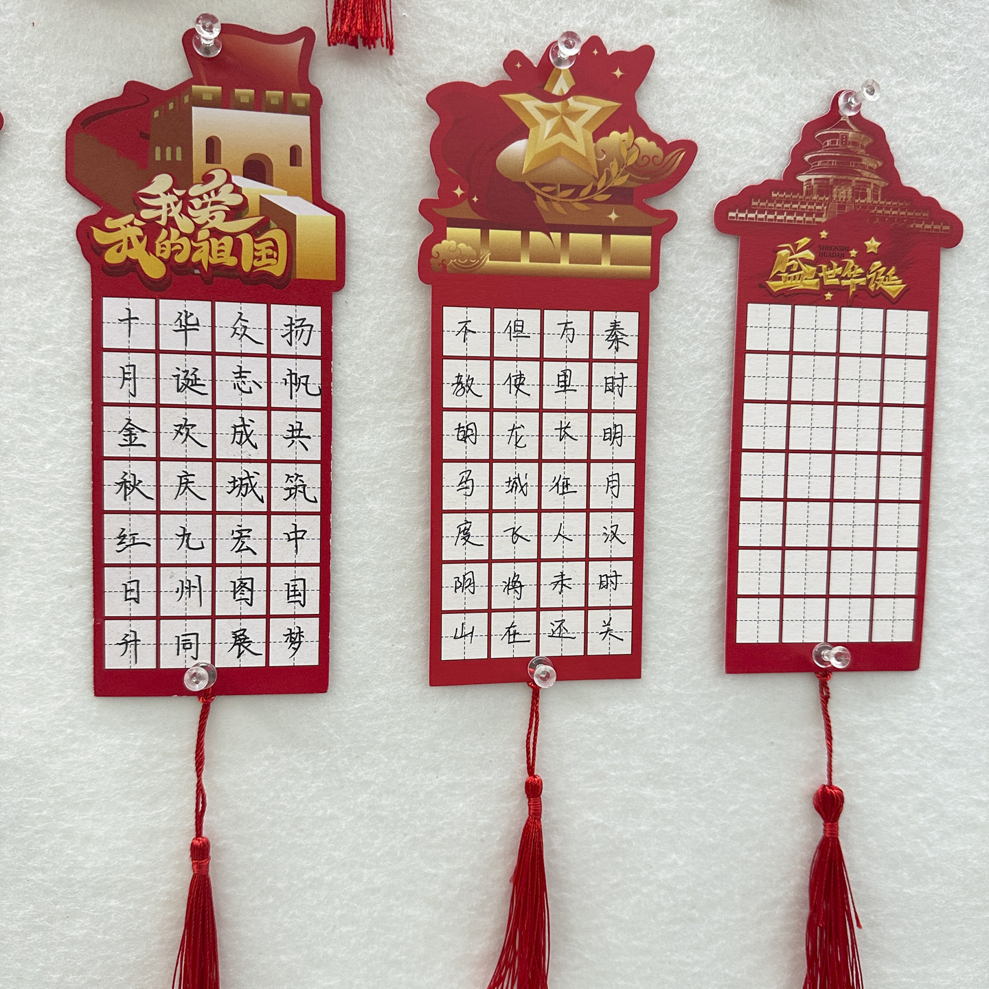 国庆节硬笔书法作品展示墙挂卡爱国主题环创我为祖国送祝福文创墙小学生书写古诗比赛专用田字格练字红色卡纸
