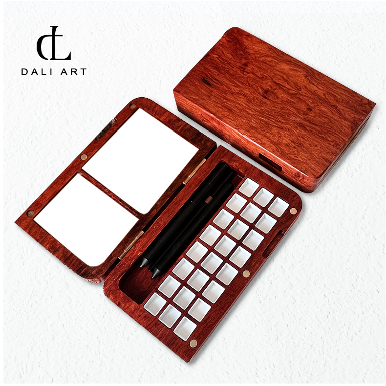 黑胡桃水彩盒分装盒笔盒固体水彩 加厚不变型便携保湿24色2毫升