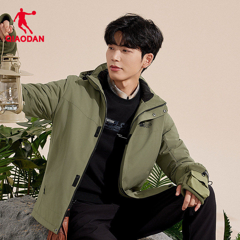 鸿星尔克外套男秋季男士户外防泼水加绒三合一冲锋软壳夹克风衣