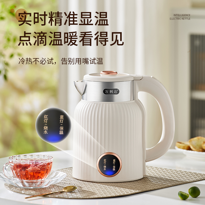 万利达电热水壶烧水壶便携全自动家用保温一体宿舍2024不锈钢温度