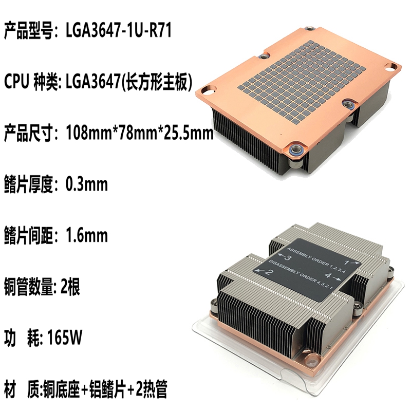 金钱豹2U主动热管铜底R83LGA3647长方形1U静音服务器CPU散热风扇