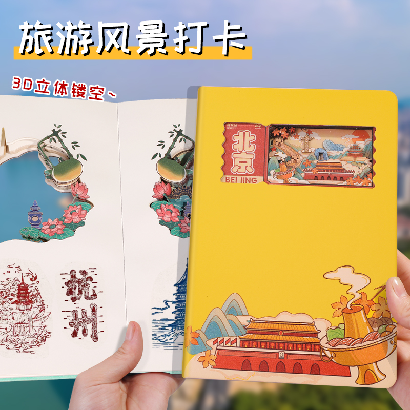 3D立体镂空纸雕笔记本景区旅游打卡集章盖章本纪念品杭州武汉南京城市文创本可定制长沙集章册景点图案logo