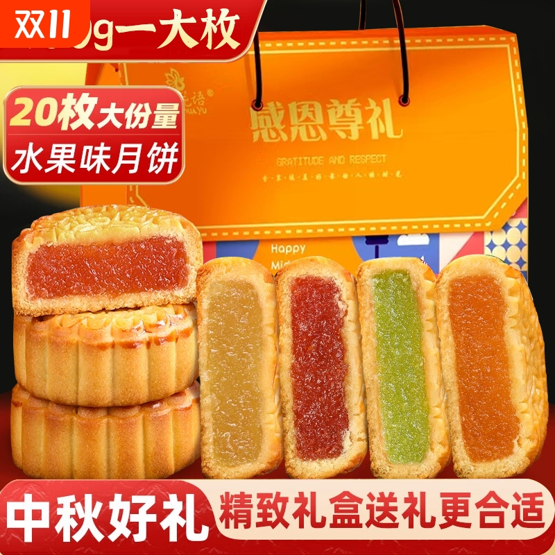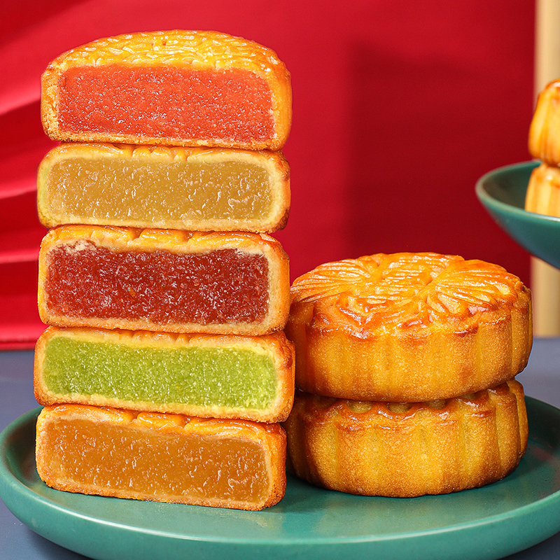 广式水果大月饼100克草莓哈密瓜馅料多低糖散装礼盒批发中秋送礼
