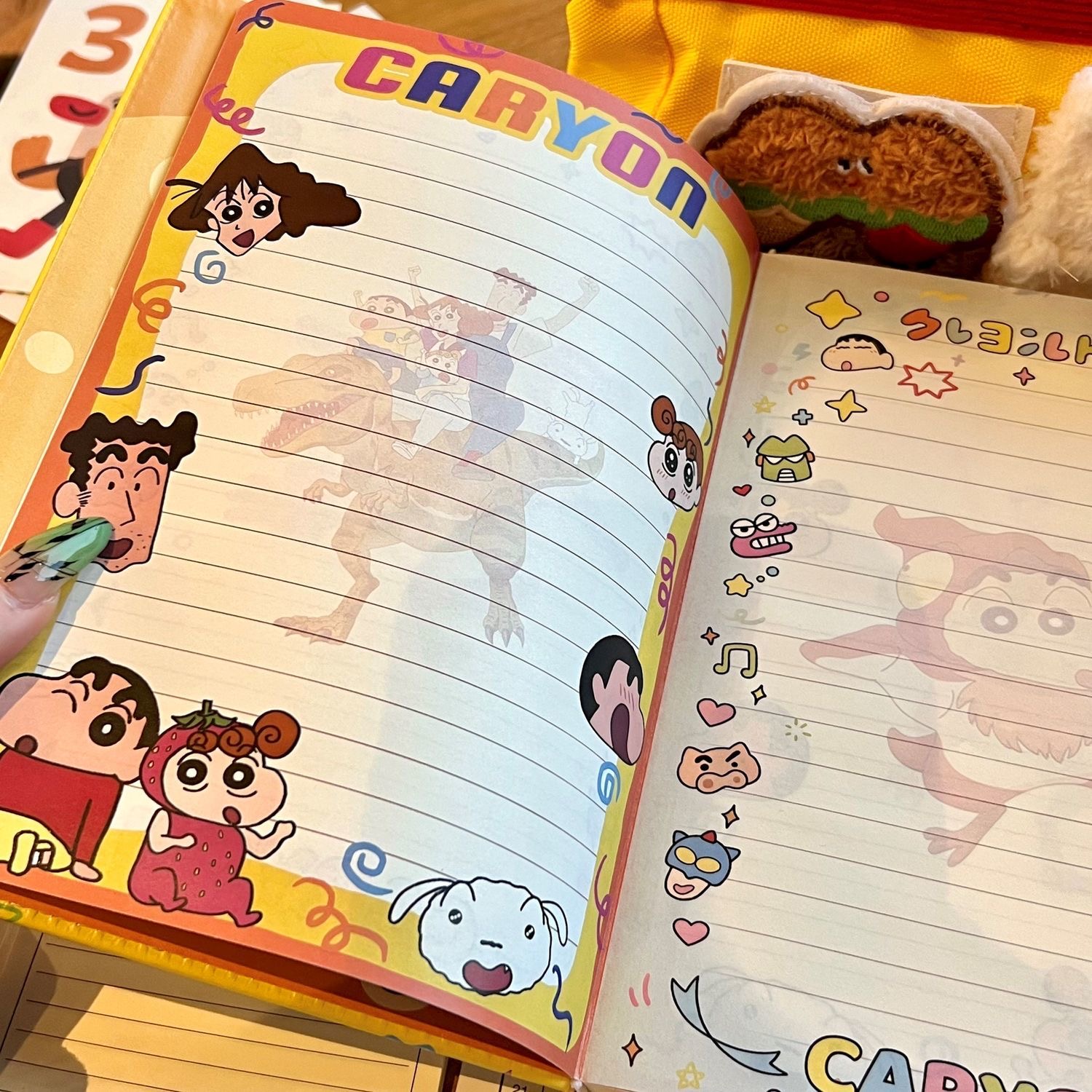 蜡笔小新皮质彩色内页笔记本A5加厚高颜值日记手账本可爱学生本子