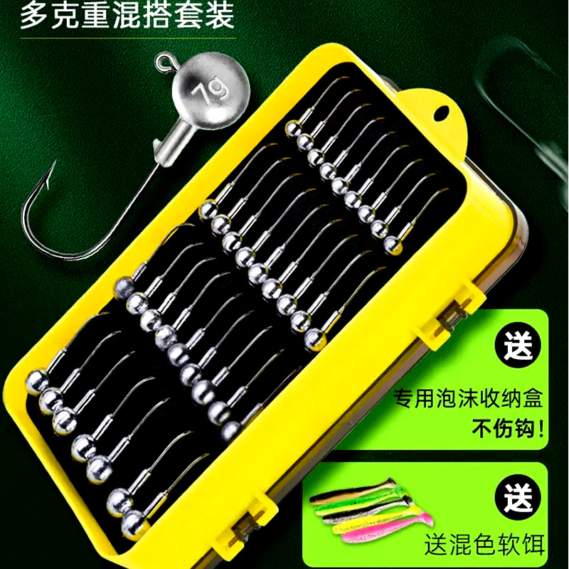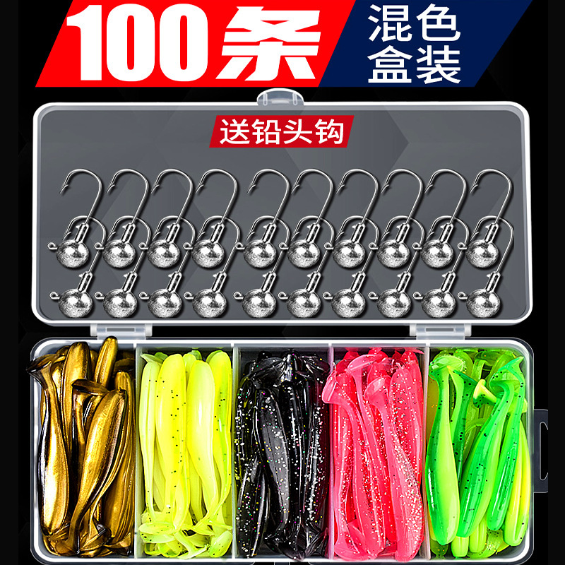路亚饵套装软饵淡水倒钓尾鱼软虫铅头钩微物远投鲈鱼饵