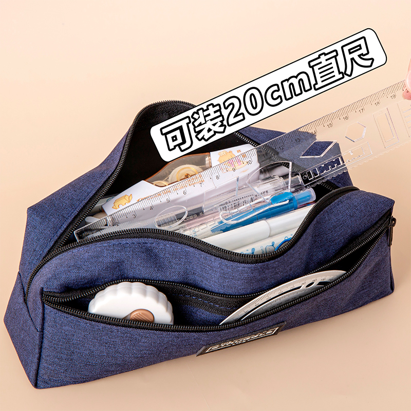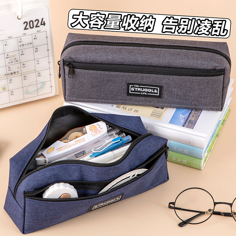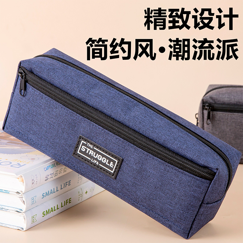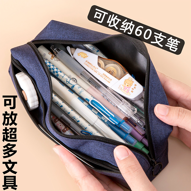 双层拉链式帆布笔袋男孩2025新款简约大容量学霸小学生女生初中铅笔文具盒笔袋简约纯色高颜值ins风带密码锁