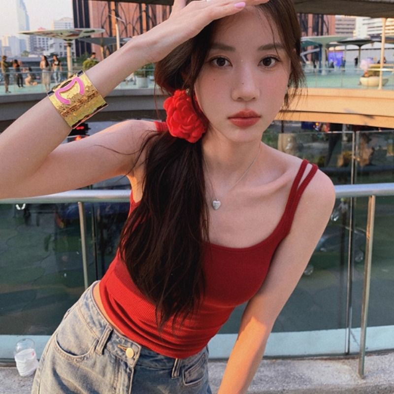 带胸垫吊带背心女夏遮副乳内搭打底外穿美背独特精致绝美上衣出游