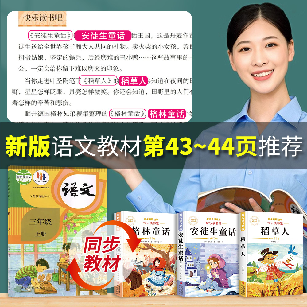 全3册 稻草人书安徒生童话三年级必读上册快乐读书吧正版的课外阅读书格林童话全集叶圣陶书目推荐完整版配套人教版稻草人叶圣陶