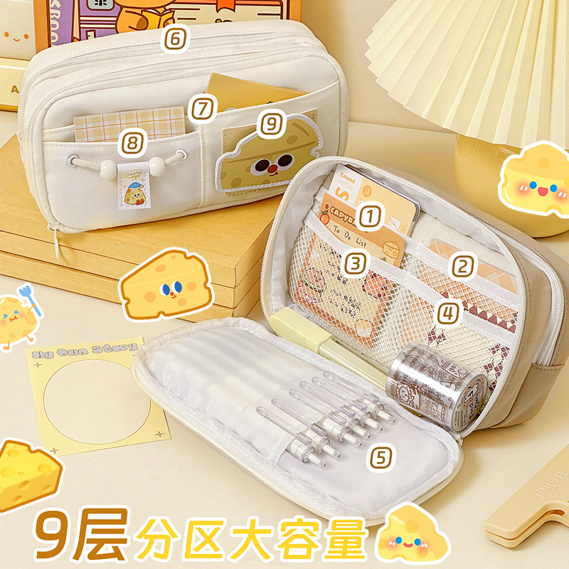 奶酪笔袋颜值ins风2025新款小学生女孩网红超火多功能大容量文具盒男女孩款可爱文具袋高初中男生笔盒铅笔盒