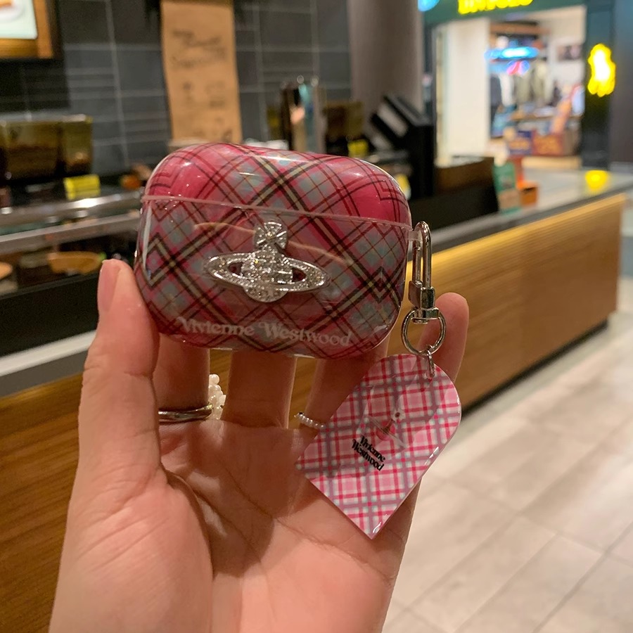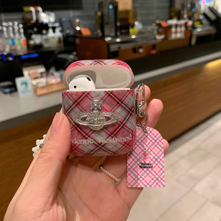 适用苹果airpods3保护套拼接粉色格纹西太后airpods2复古airpodspro无线蓝牙耳机壳pro2挂件轻奢立体闪钻
