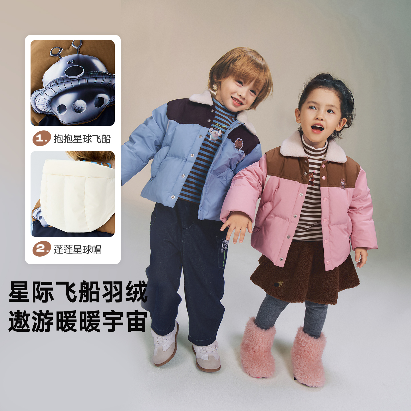 马拉丁童装儿童羽绒服25冬装新款男童飞船元素印花一手长羽绒服