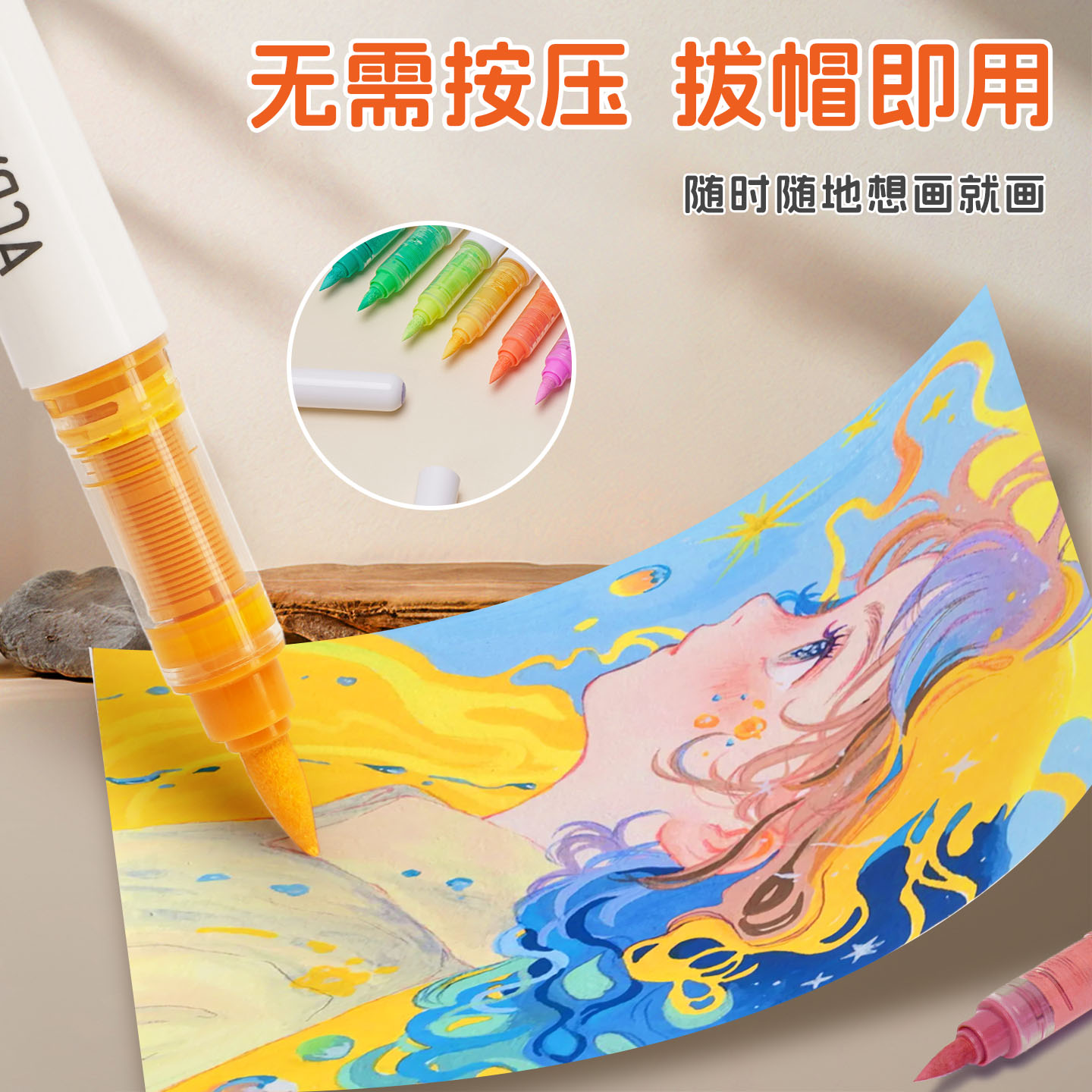 晨光丙烯马克笔不透色可叠色美术软头可水洗防水直液式丙烯24色