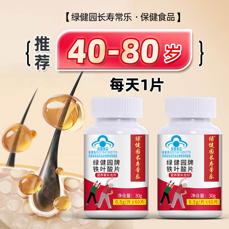 叶酸铁片老人叶酸片中老年人维生素B9瓶装b9正品补铁成备孕孕期