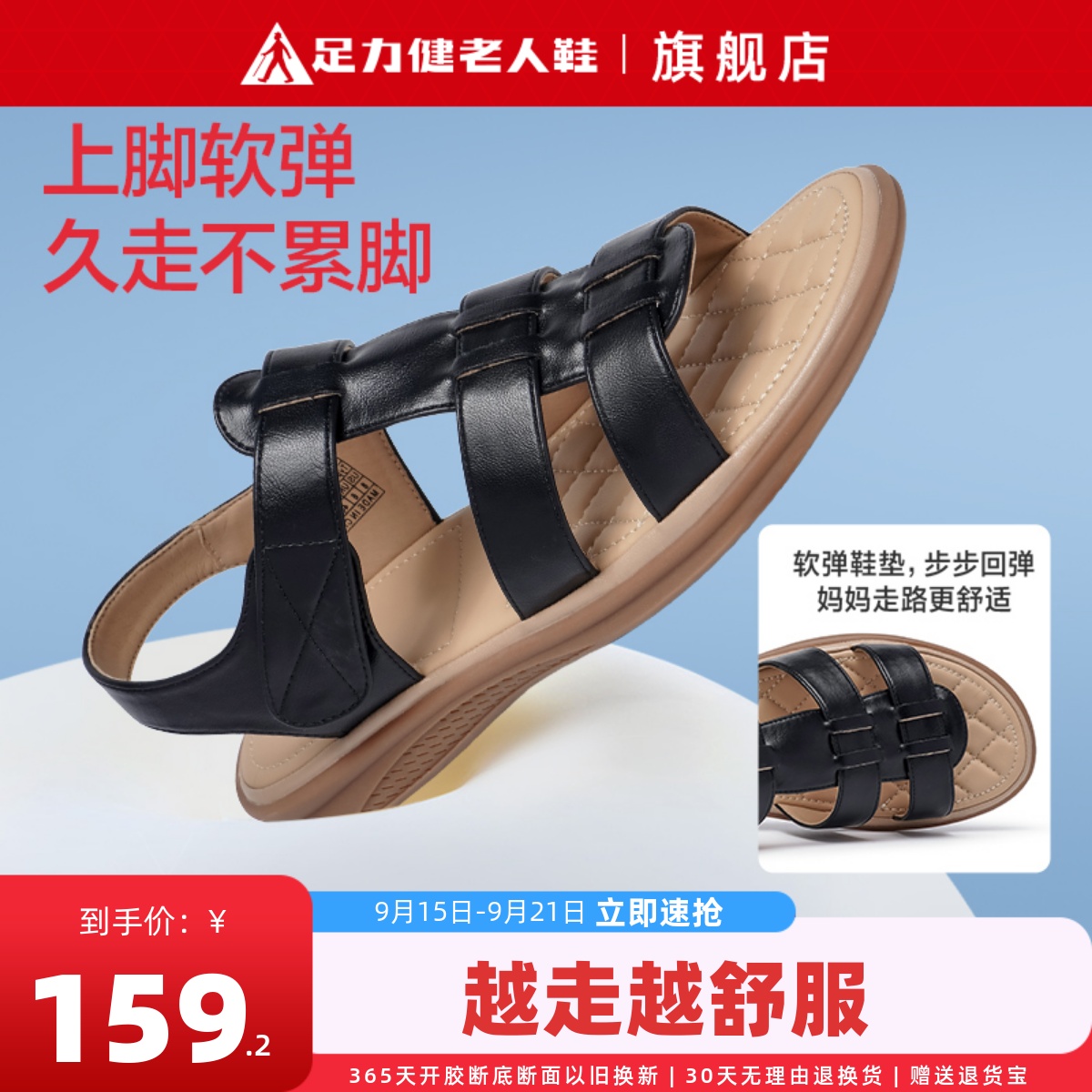 足力健老人鞋妈妈凉鞋女软底舒适不累脚平底轻便老年人奶奶老太太