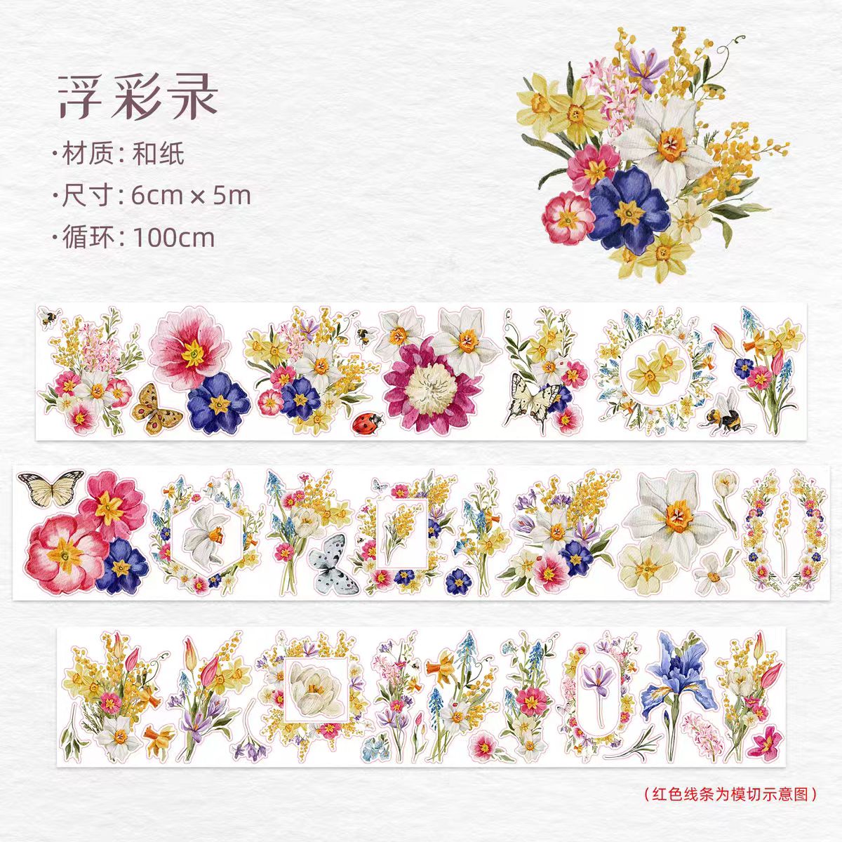 WT手帐胶带分装普罗旺斯紫罗兰之夜玫瑰手札锦雀衔春花花素材贴纸