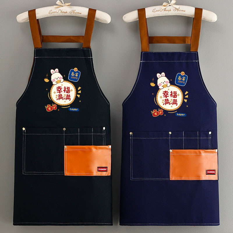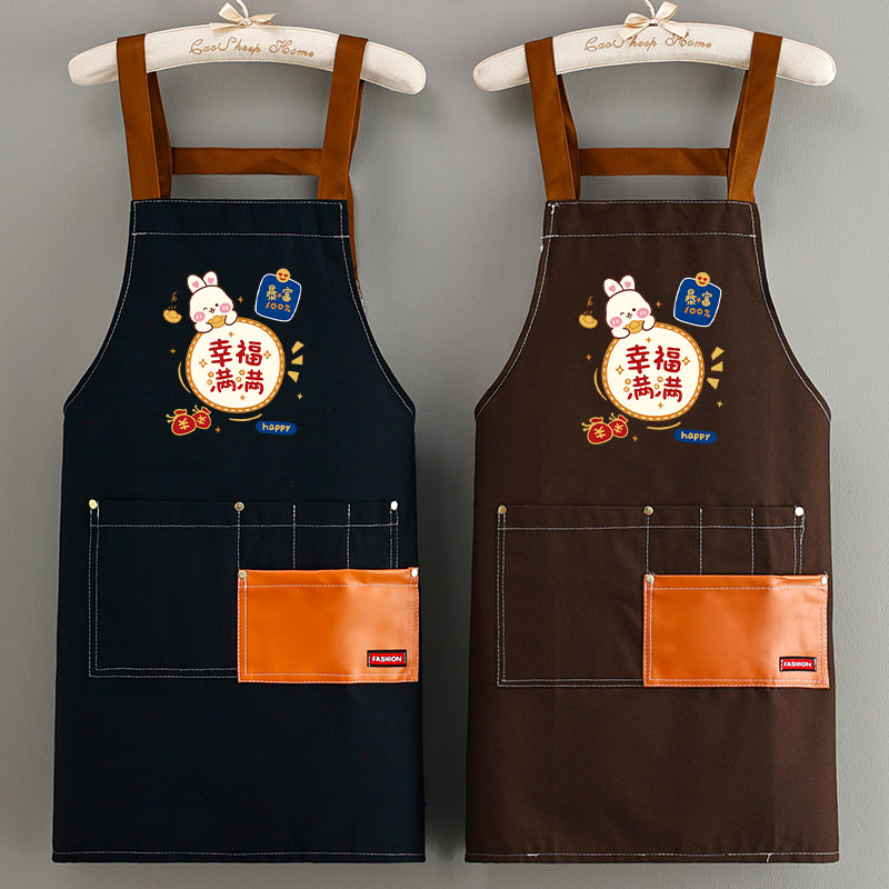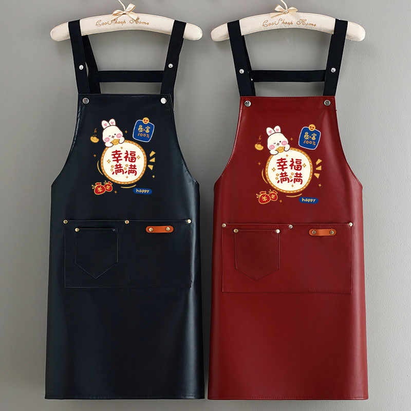 韩版2024时尚PU软皮革杀鱼餐饮专用耐磨防水防油围裙工作红色帆布