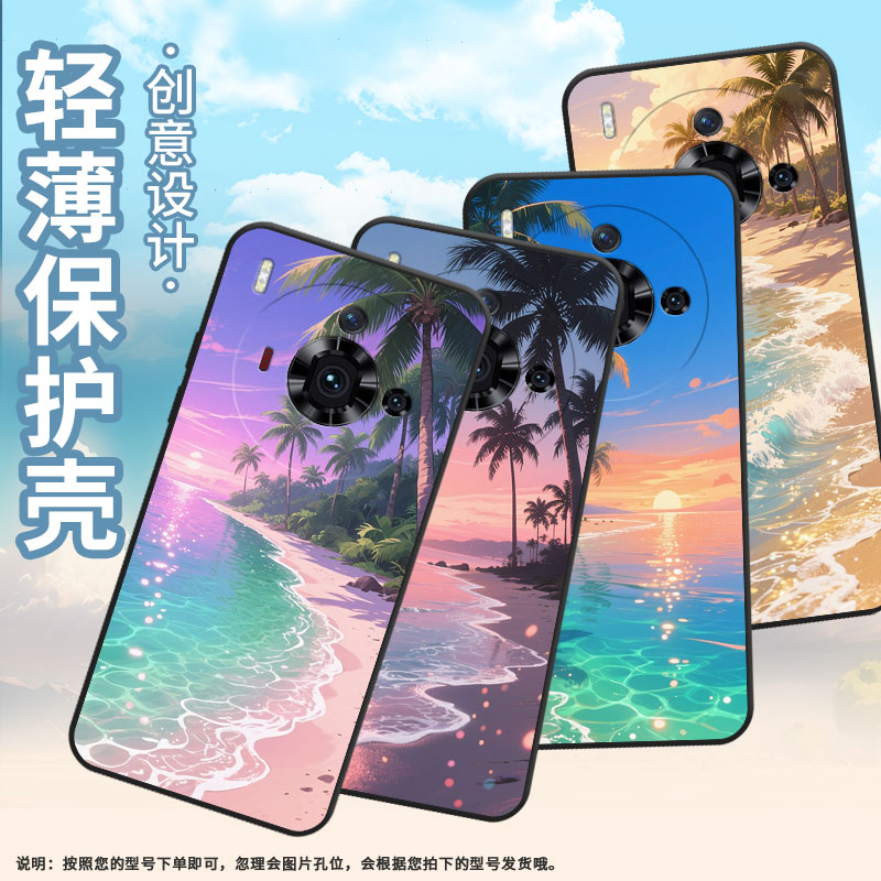 适用努比亚z50spro手机壳NX713J海岸线风景耐脏挂绳时尚高级感珊瑚色晚霞海边风景国潮个性夏日清新氛围简约