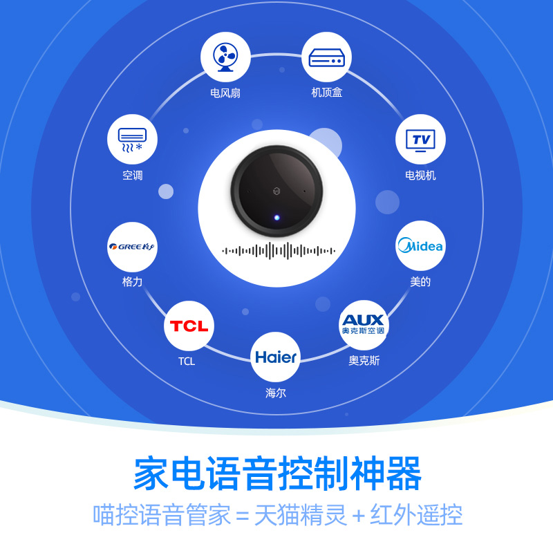 天猫精灵喵控智能音箱内置红外遥控器语音声控家电手机远程开关