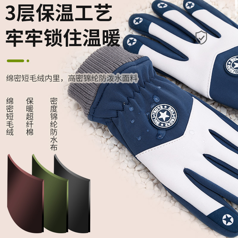 冬季滑雪手套触屏摩托车加绒保暖加厚骑行防水防风寒防滑户外防雨