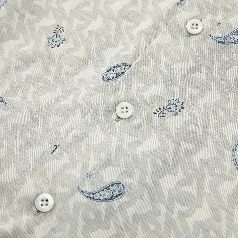 RARE威雅男装 秋冬新款灰色衬衣 LOGO低纹蓝色小花男士长袖衬衫