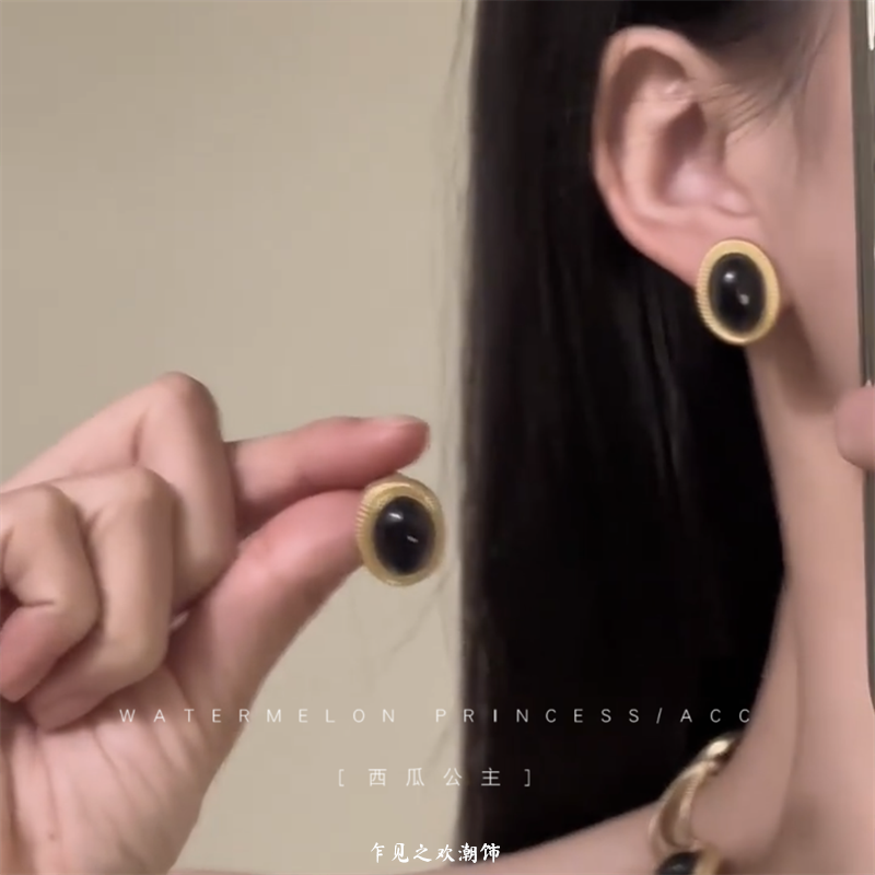 金色虎眼石项链女款美拉德中古配饰2025新款轻奢小众高级感毛衣链