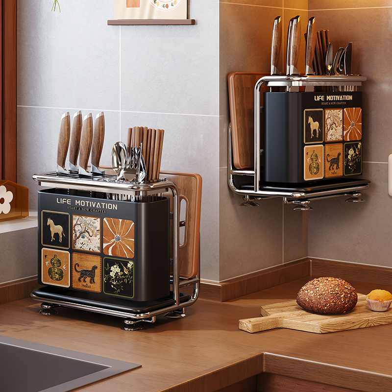 厨房可壁挂刀架置物架筷子收纳盒放菜板锅盖多功能刀具一体放置架