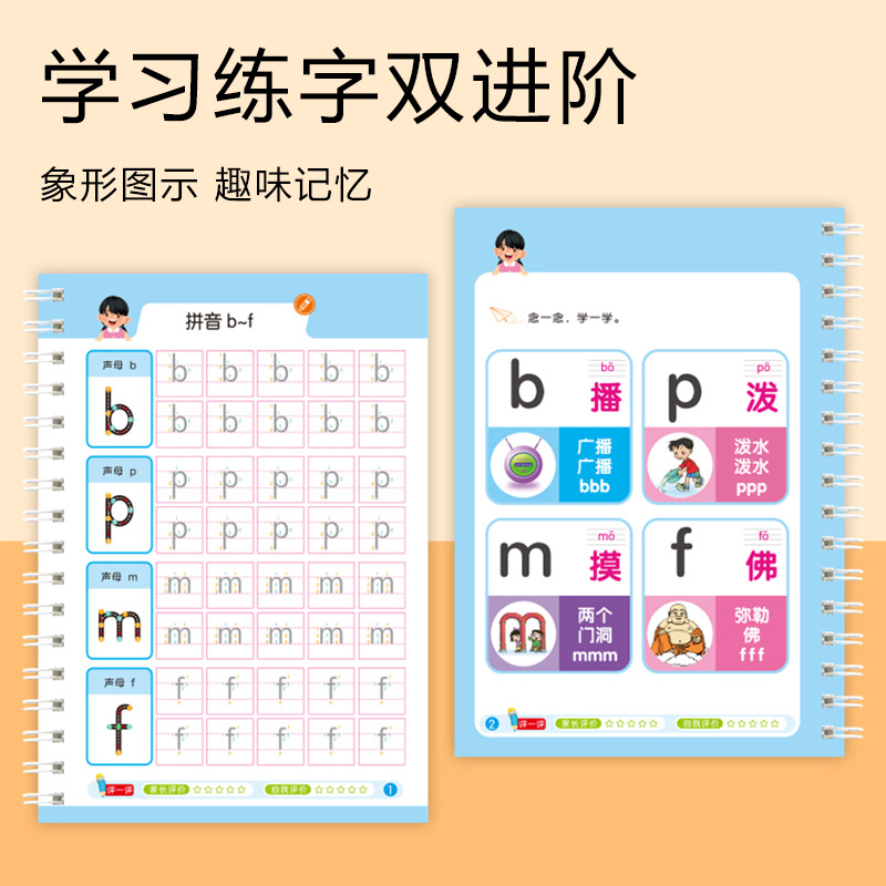 三点坐标定位凹槽控笔数字拼音笔画儿童简笔画幼儿园描红练字帖新