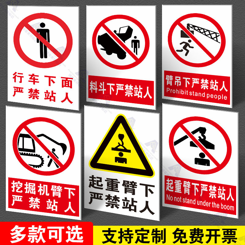 当心吊物安全标识牌吊装区域起重机小心吊物落物警示牌吊装作业区域禁止靠近警告牌吊车臂下严禁站人标牌定制