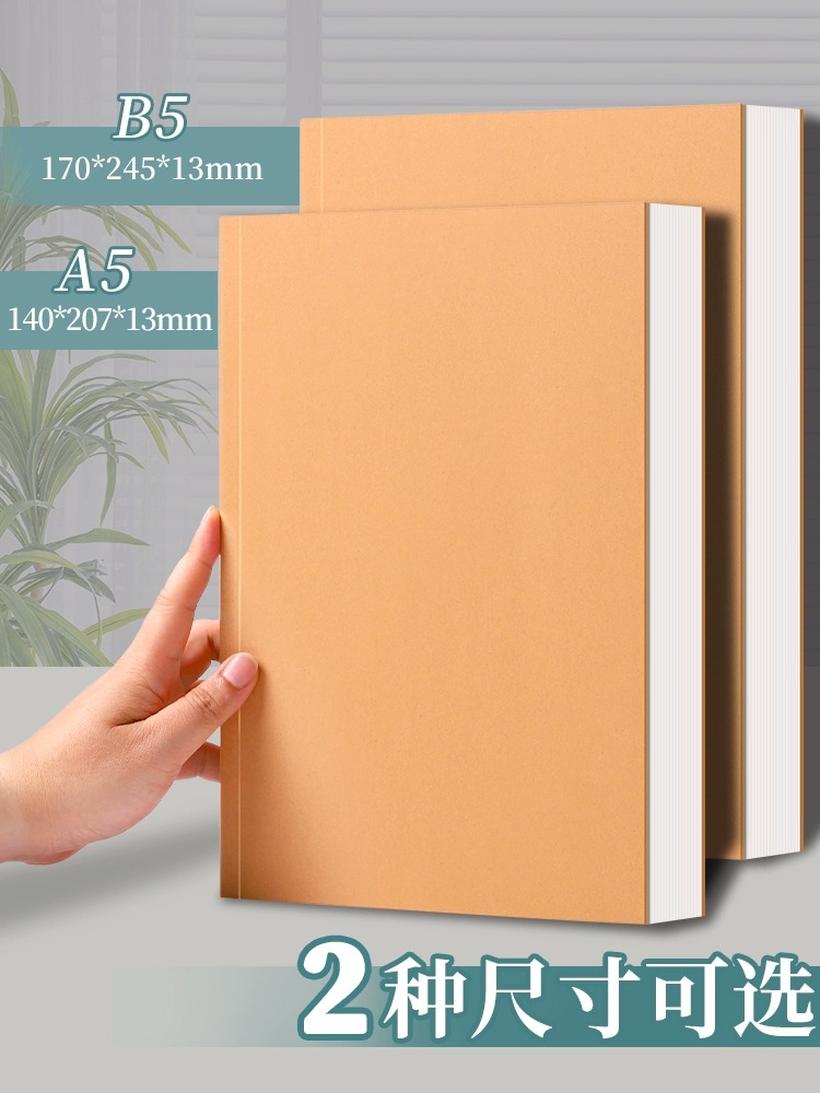 复古牛皮纸笔记本超厚空白本子加厚白纸本草稿本学习可平摊高颜值本记事本日记本a4a5小方格写作本大学生初中